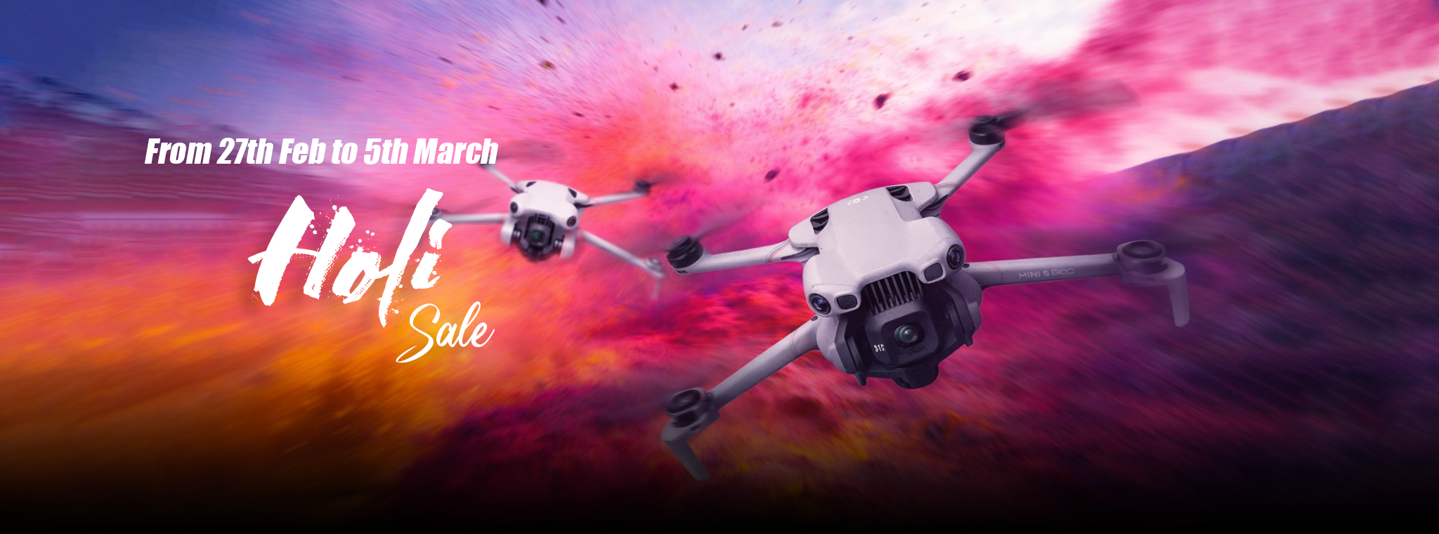 At Dronevex, we’re celebrating this Holi with unbeatable offers on the latest DJI drones! From creators and travelers to professionals, our exclusive sale brings you top aerial solutions at never-before prices. This is the perfect time to upgrade your gear, capture breathtaking shots, and explore new heights with India’s best drone collection. Don’t miss out—these deals are for a limited time only!